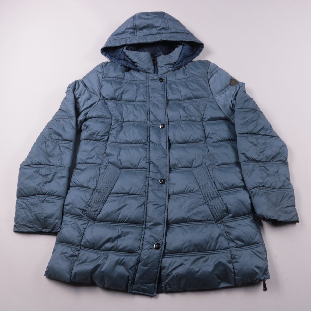 Удлинённый стёганый пуховик GIL BRET с капюшоном и застёжкой на кнопки. Подойдёт для зимних прогулок и повседневной носки в холодную погоду. Практичный плюс — лёгкий синтетический утеплитель и удобные карманы.