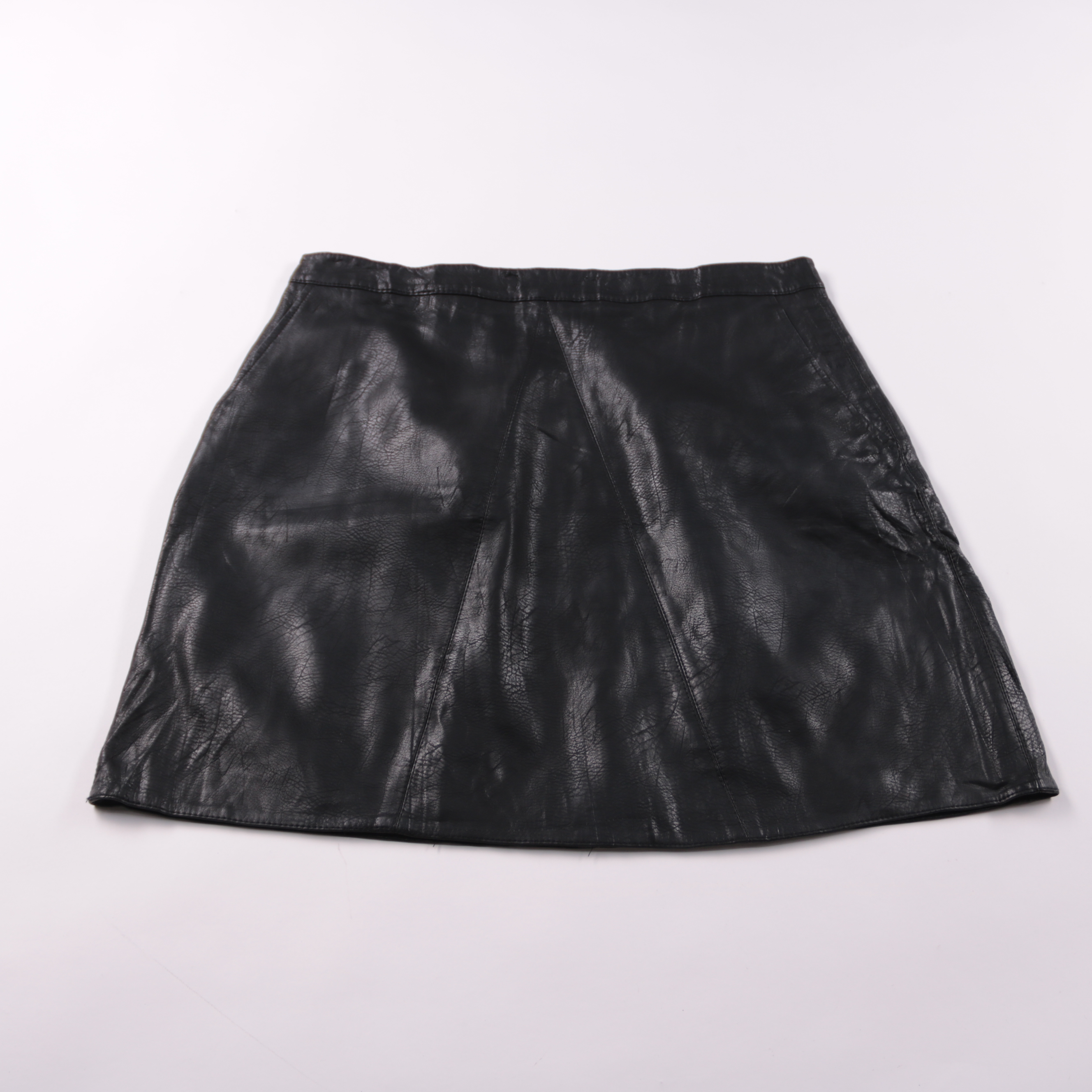 Юбка Zara Basic из экокожи чёрного цвета, короткая А-силуэта с рельефными швами. Подойдёт для повседневных и вечерних образов с футболкой, водолазкой или жакетом. Практичный материал легко протирается и держит форму.