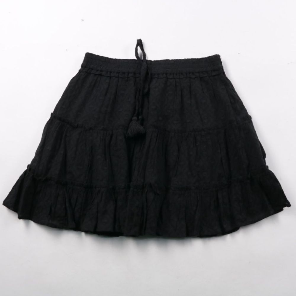 Юбка Next чёрного цвета из хлопка, с ярусным кроем и поясом на кулиске. Подойдёт для летних прогулок и отдыха, легко сочетается с футболками и топами. Натуральная ткань хорошо дышит и комфортна в жару.