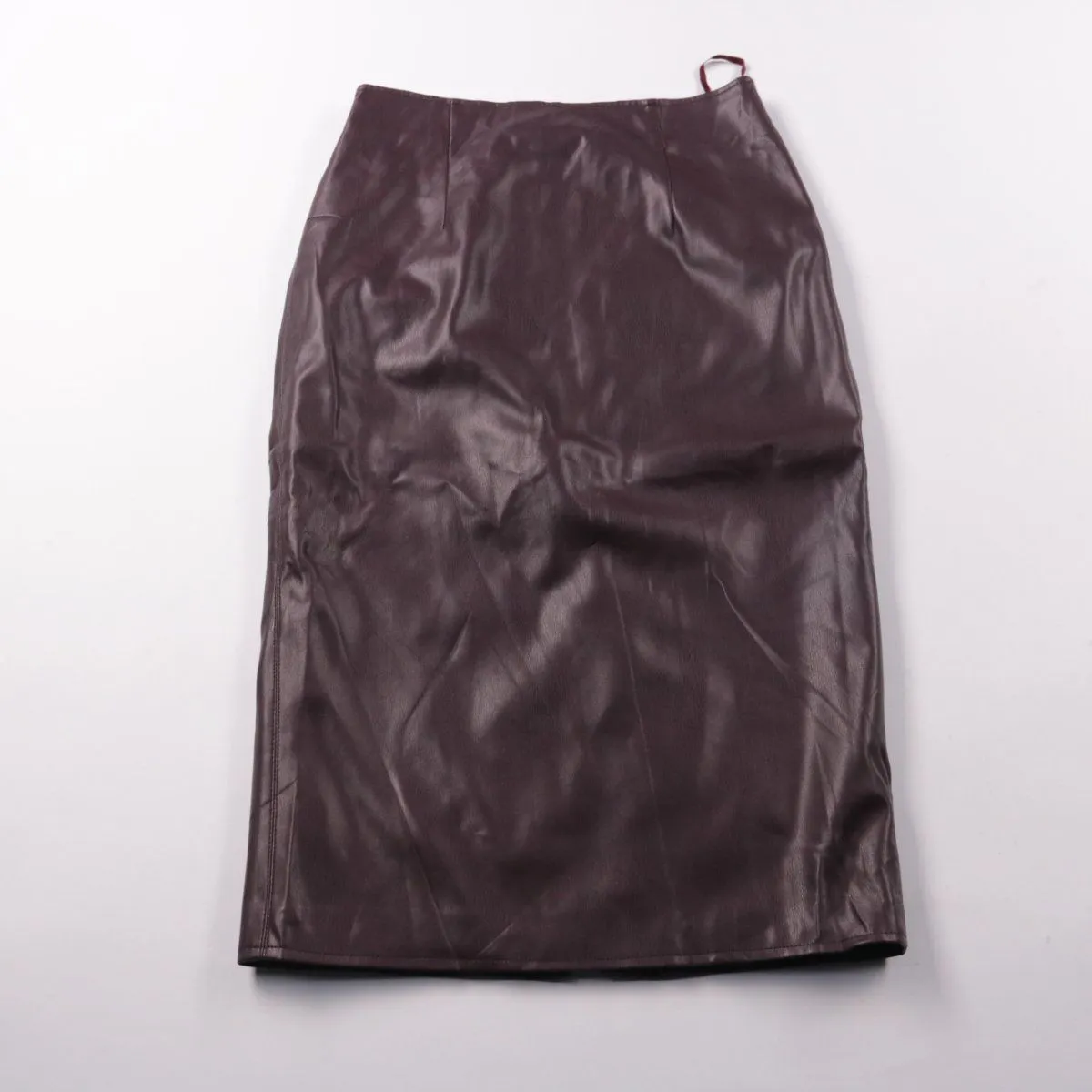 Юбка Warehouse из эко-кожи тёмно-коричневого оттенка, прямого силуэта миди. Подойдёт для офиса и повседневных образов с рубашкой, водолазкой или свитером. Практичный материал легко протирается и не требует сложного ухода.