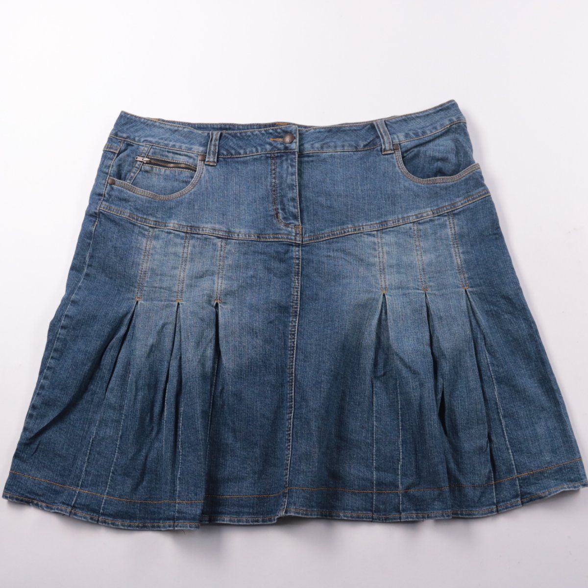 Джинсовая юбка Yessica из хлопкового денима с небольшим добавлением эластана, с карманами и складками по низу. Подойдёт для повседневных летних образов с футболками и кедами или с рубашкой и босоножками. Плотная ткань держит форму и комфортно садится по фигуре.