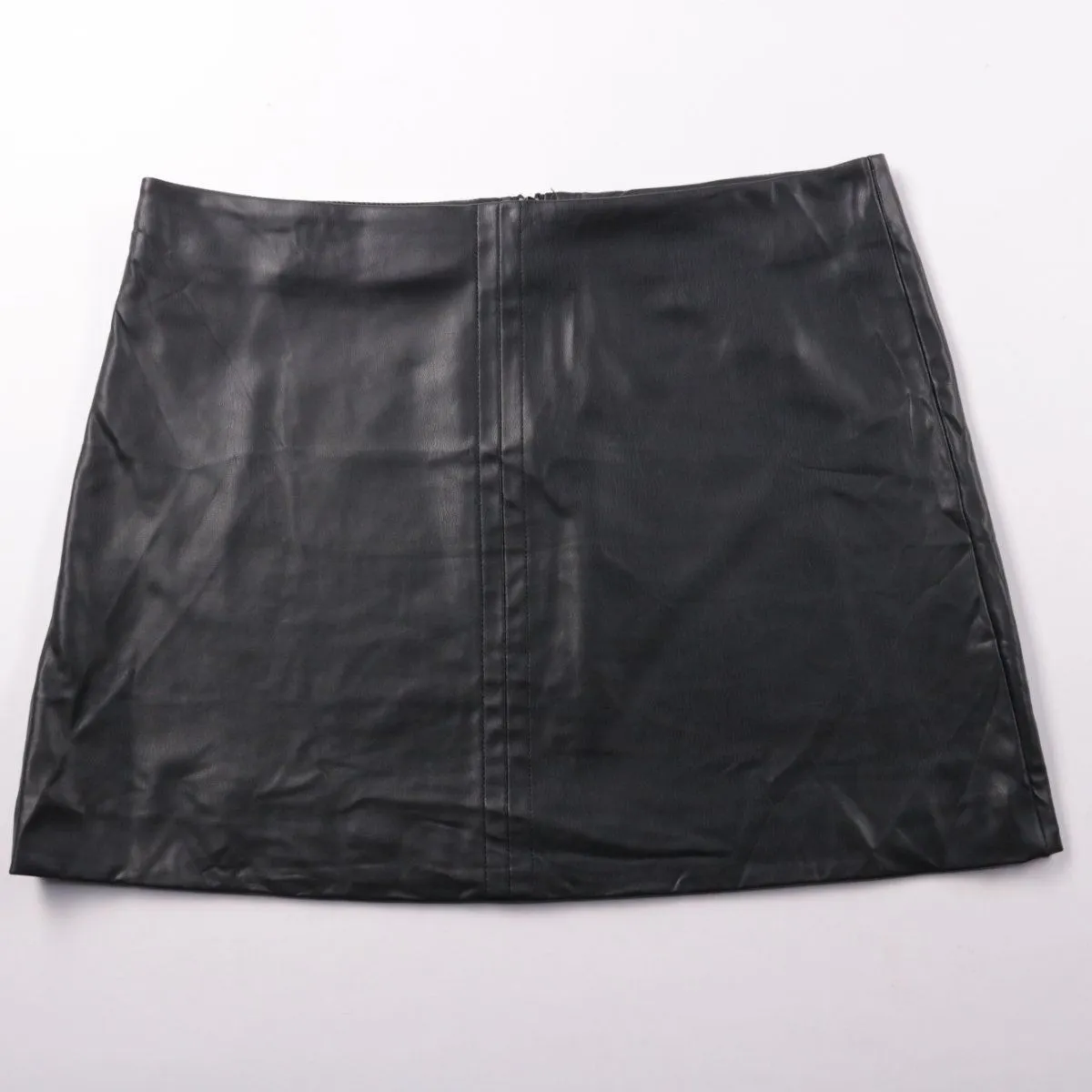 Юбка Next из искусственной кожи чёрного цвета, прямой мини-силуэт со швом по центру. Подойдёт для повседневных образов и вечерних выходов с ботильонами или кедами. Материал легко протирать и он быстро сохнет.