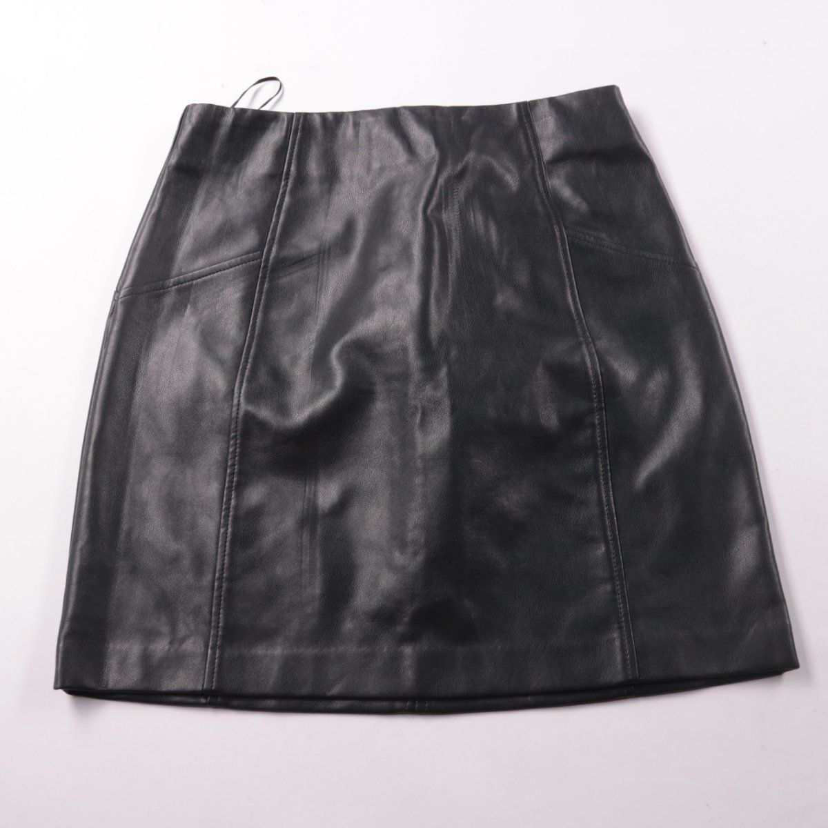 Юбка New Look из чёрной экокожи, прямого кроя с декоративными швами. Подойдёт для повседневных образов в прохладную погоду с колготками и ботинками. Материал практичный — поверхность легко протирать.