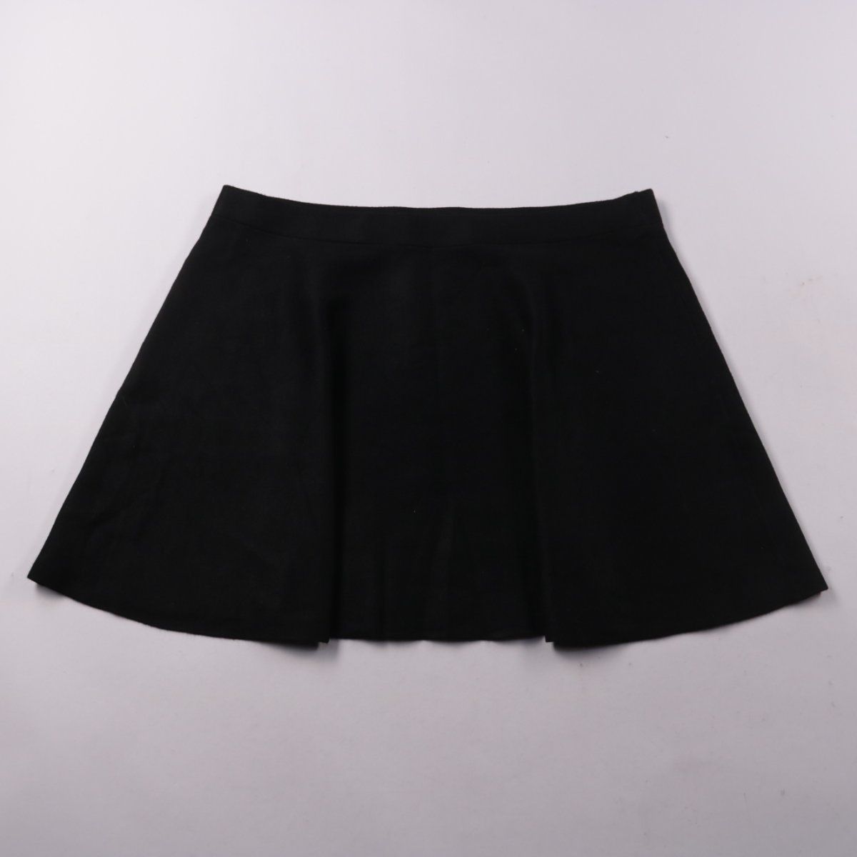 Чёрная юбка Primark Cares короткой длины, расклешённого силуэта. Подойдёт для повседневных образов и офиса с плотными колготками. Практична тем, что легко сочетается с базовыми вещами и не маркая.